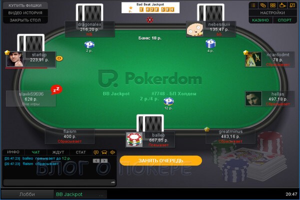 Это можно было бы считать лишь дополнением, но на деле именно оно качественно выделяет Pokerdom на фоне остальных покер-румов. Учитывая темпы развития веб-технологий, воспроизвести работающий клиент в среде браузера давно не составляет труда, но этого почему-то все равно не происходит в крупных масштабах. На подобный шаг идут лишь отдельные игроки рынка, среди которых и русский покер-рум.